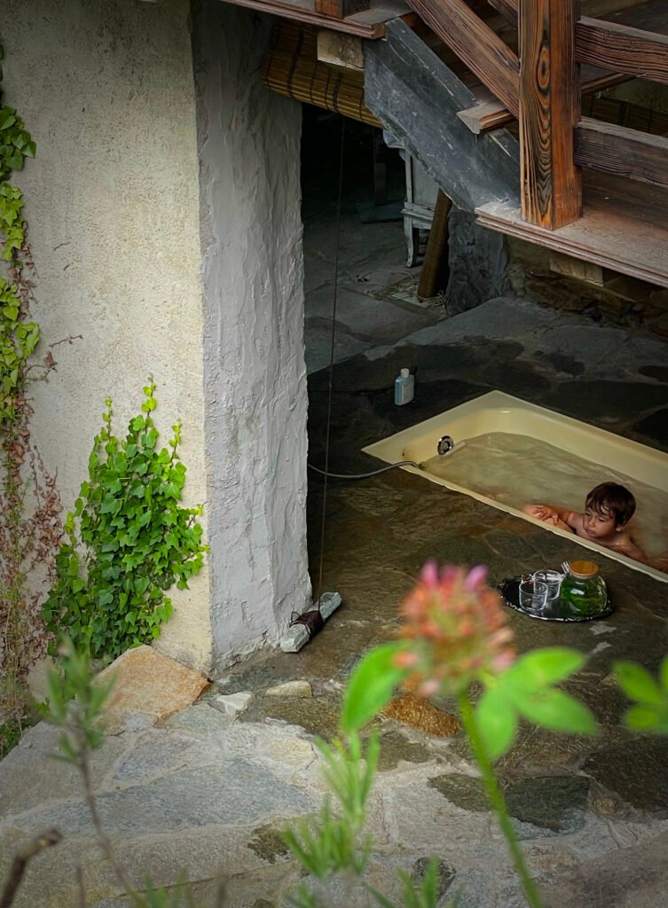 Bamboo curtains can be pulled shut for complete privacy, or left open to take in the view of the mountains. You’re also welcome to hang the “Do Not Disturb” sign to enjoy your time undisturbed. The hot tub is available all year round, but there’s something especially magical about using it in winter — surrounded by snow, with steam rising into the crisp air as you soak in warmth and silence.